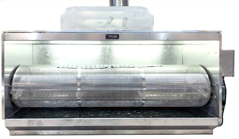 滾筒式手工噴涂除塵器:適用于整張的大牛皮,用夾子固定在帶有網孔的滾筒上,滾筒緩慢旋轉,便于噴漿操作。