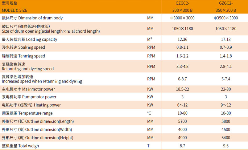 主要功能與特點(diǎn) 使用該轉(zhuǎn)鼓可以減少浸水、鞣制、染色工序用水量,可以減少化工原料用量。鼓內(nèi)采用新式結(jié)構(gòu),在同樣工藝時間內(nèi)使皮張 更柔軟、染色更均勻。比普通轉(zhuǎn)鼓多裝載30%以上,裝載總量可以達(dá)到轉(zhuǎn)鼓容積的60%—70%。 1、轉(zhuǎn)鼓鼓體采用不銹鋼板材制作,鼓體內(nèi)外層之間用優(yōu)質(zhì)保溫材料填充。轉(zhuǎn)鼓另一端裝有含多種功能的交換器系統(tǒng),鼓內(nèi)有單方向旋轉(zhuǎn)自動液體循環(huán)系統(tǒng)。為方便操作,在機(jī)器右側(cè)裝有輔助控制電器箱。 2、轉(zhuǎn)鼓一側(cè)配置重錘排氣閥,從而確保鼓體在工作過程中始終鼓內(nèi)無壓力。 3、鼓體內(nèi)裝有帶傾斜度的長檔板,這種擋板機(jī)械作用大,特別適合牛皮加工 4、為縮短轉(zhuǎn)鼓清洗時間,在鼓體一側(cè)增加了兩組手動排水裝置。 5、傳動系統(tǒng):電動機(jī)經(jīng)轉(zhuǎn)鼓專用減速箱變速后,再通過齒輪帶動鼓體轉(zhuǎn)動。減速箱的主動軸上配置了氣動剎車裝置。 6、電氣控制系統(tǒng):采用變頻調(diào)速、PLC電路控制。 主要技術(shù)參數(shù)